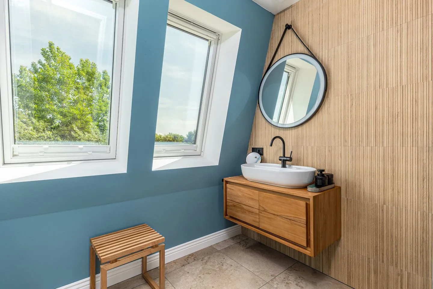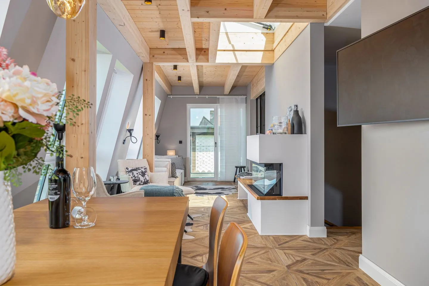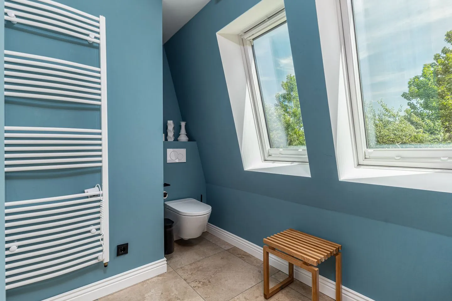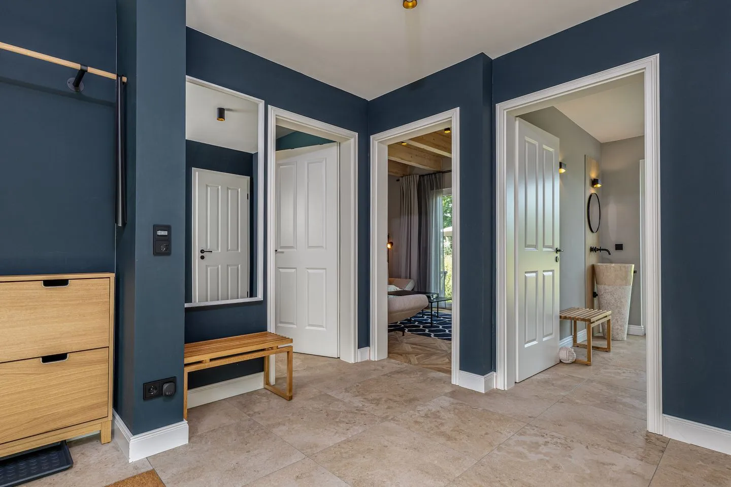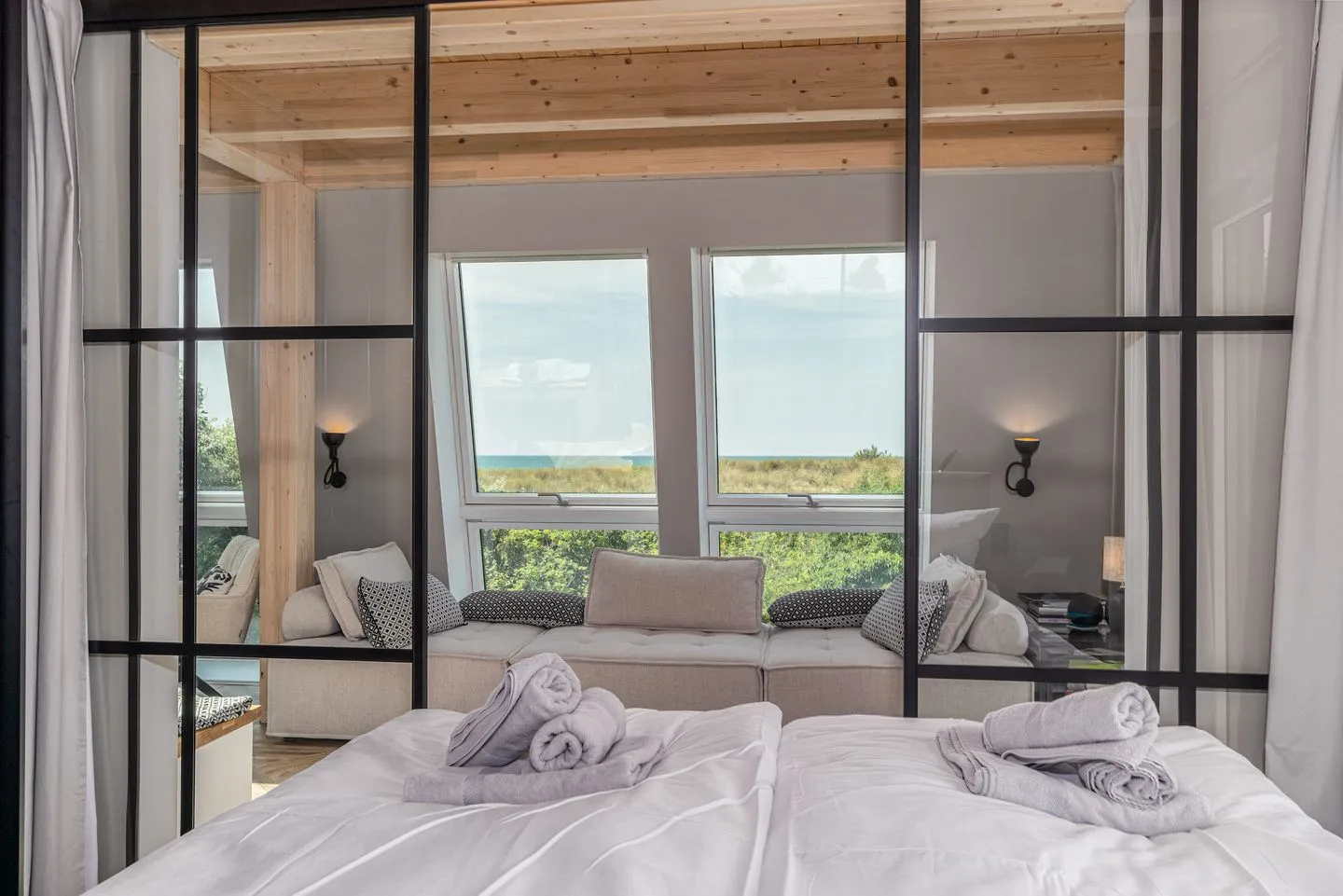 Das Mobiliar, wie auch die Räume, sind in hellen, dezenten Farben gehalten und mit modernen dunklen Akzenten kontrastiert. Dies sorgt auf Anhieb für eine stilvolle Wohlfühl-Atmosphäre. Die übergroßen Fenster der Räume geben zusätzlich viel Licht und Luft. Ein Kamin wird, gerade an ungemütlichen Tagen, für wohlige Wärme sorgen. Das ist Meerzeit.
