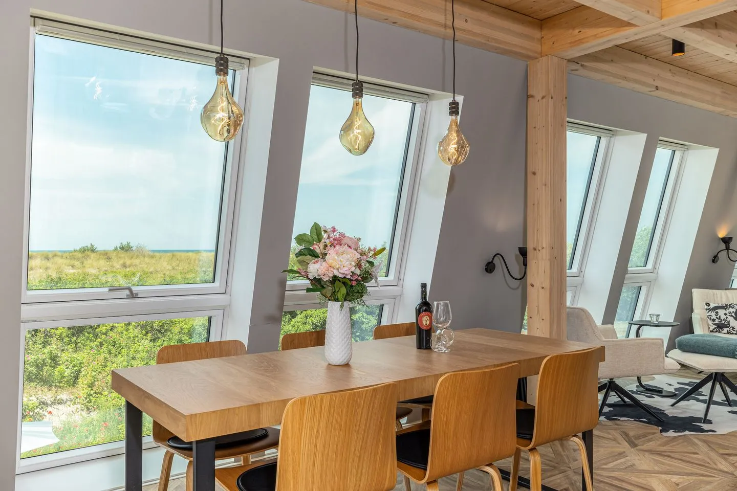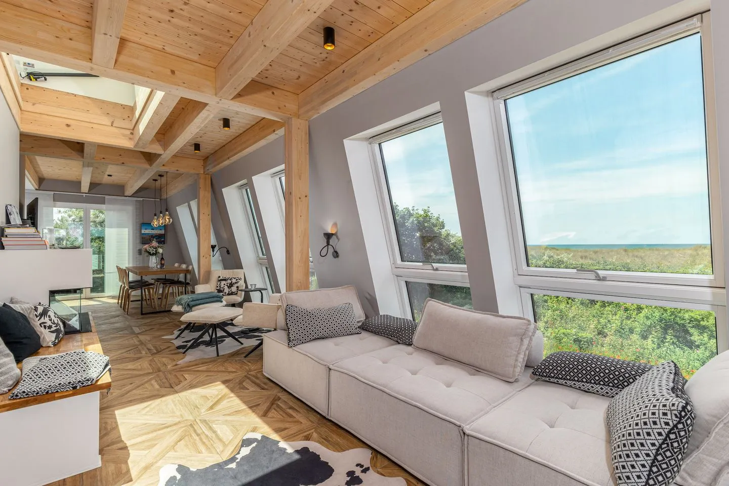 Das Haus, in dem bis zu sechs Personen übernachten können, erstreckt sich über zwei Wohnebenen und wurde im Jahr 2024 neu erbaut. Die Weite der Ostsee dürfen Sie hier sowohl vom Masterbedroom im Obergeschoss als auch von dem angrenzenden offen gestalteten Wohn-/Ess-Bereich aus genießen.